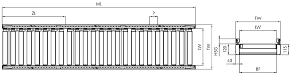 | ZL | Chiều dài một vùng | P x Số con lăn trong vùng |